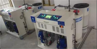 現場制備主要采用二氧化氯發生器或AB劑調和的方法,也有少數景區采用二氧化氯泡騰片。污水廠由于二氧化氯投加量較大,多采用現場制備的方式獲得二氧化氯,即二氧化氯發生器。