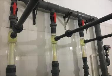 成品次鈉在稀釋成5%的溶液時,需要采用軟水,否則很容易結垢(圖2),而且成品次鈉會溶鹽會分解產生大量氣體,所以投加的時候需要考慮排氣。